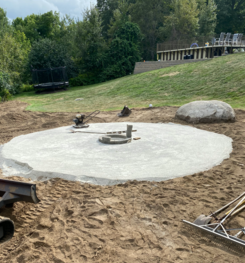 This yard in Tewksbury had plenty of room for a new firepit, as well as a large circle-pack patio to form a gathering space